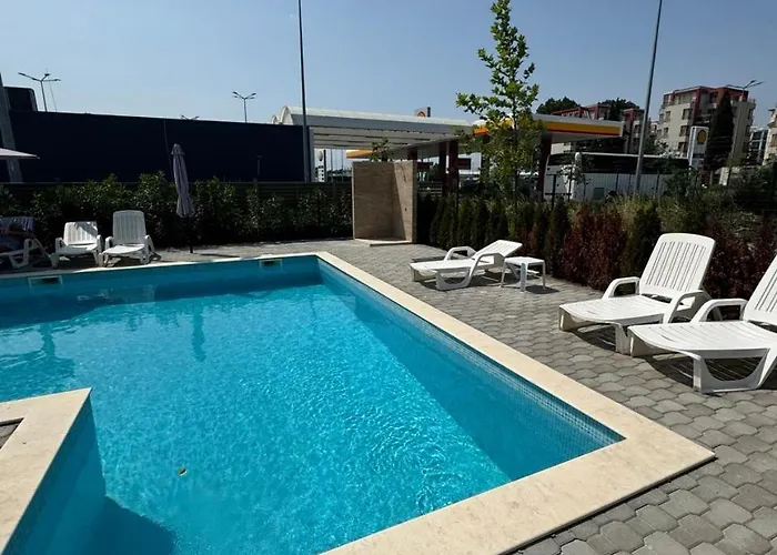 Situat la aproape 10 minute cu mașina de Biserica Hristos Pantocrator din Nesebăr, Студия Магнолия 6, Солнечный Берег Болгария se află la doar 1.3 km de un loc de top pentru familii, precum Parcul de distracții Sunny Beach Central. Pentru a diversifica petrecerea timpului liber, oaspeții au la dispoziție o piscină privată.
